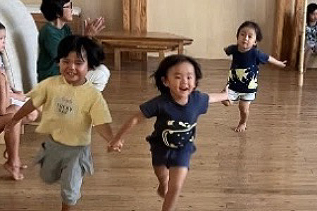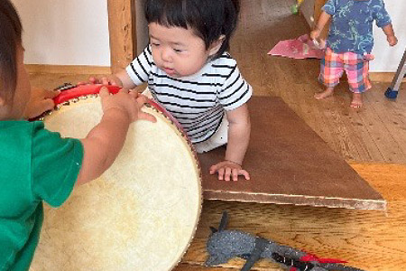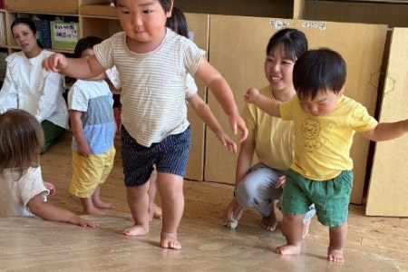 ヨチヨチ歩きが始まった仁志、月、龍之介はリズムとかけっこにも参加します。
