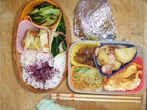 食のあり方を言えば、むしろ家庭でのそれがより重要になりますが、保育士と親の共同を進めるために月に3〜4回「弁当の日」を設けています。この日は、保育士が子どもたちが広げる弁当を見て、アドバイスを要する点があれば、親に率直に伝えます。参考になる弁当をスライドにして、公開することもあります。